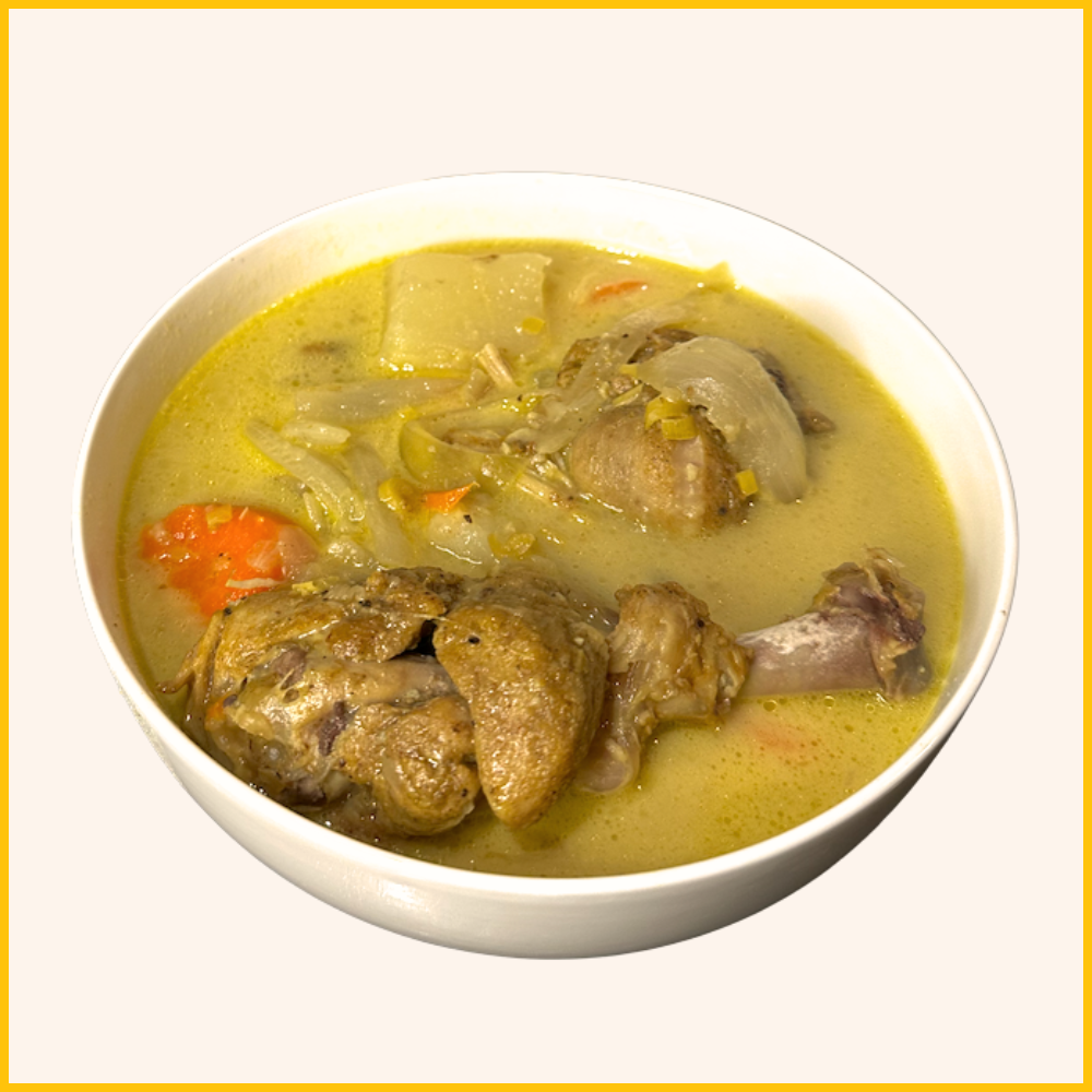 - Marinate chicken with salt, bouillon, sugar, pepper, and curry powder for at least 15 minutes or overnight.